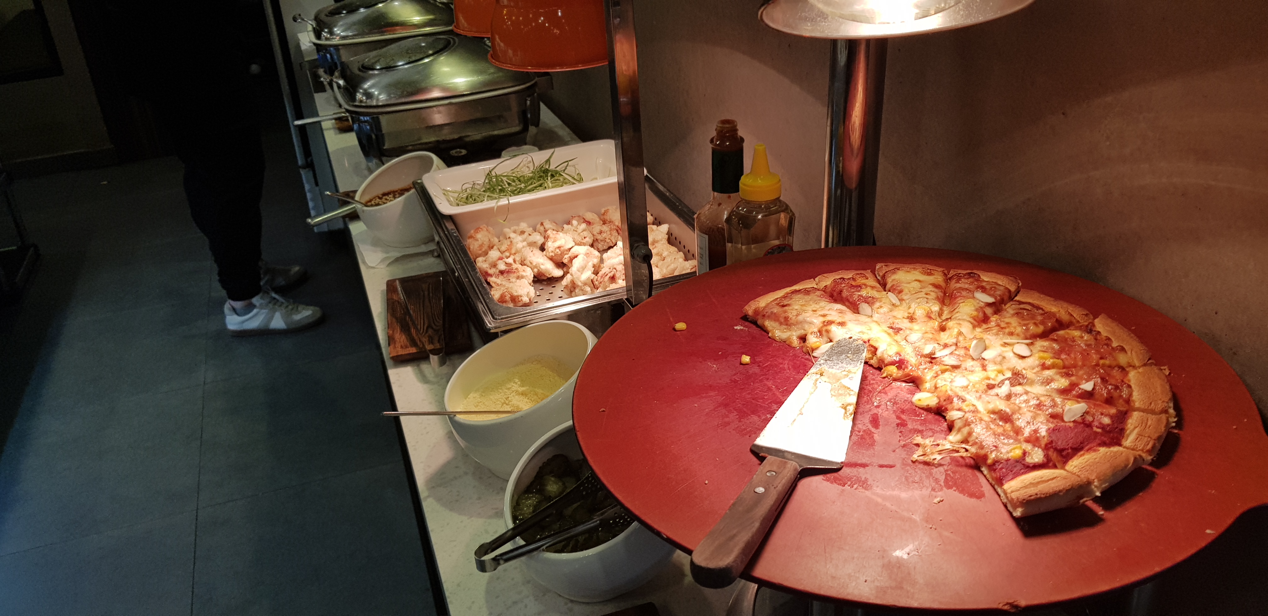 이따위로 피자하고 수육인지 보쌈인지 하는 고기도 놓아서