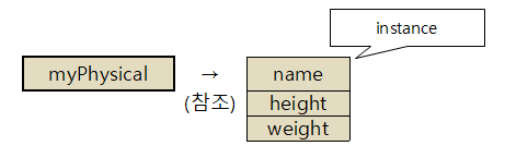 아래와 같이 클래스형 변수 myPhysical은 실체인 인스턴스를 참조하게 됩니다