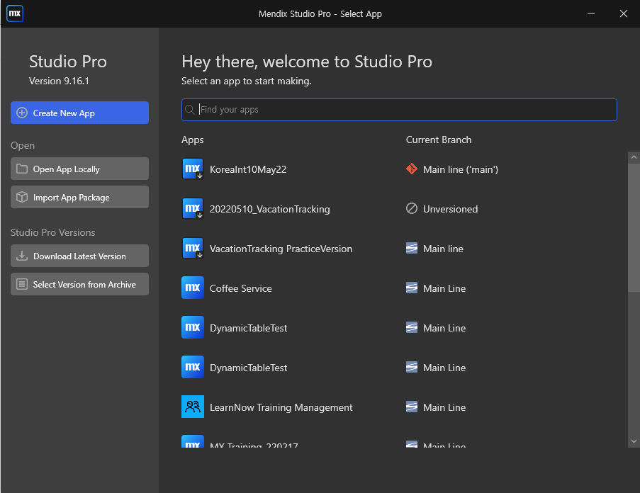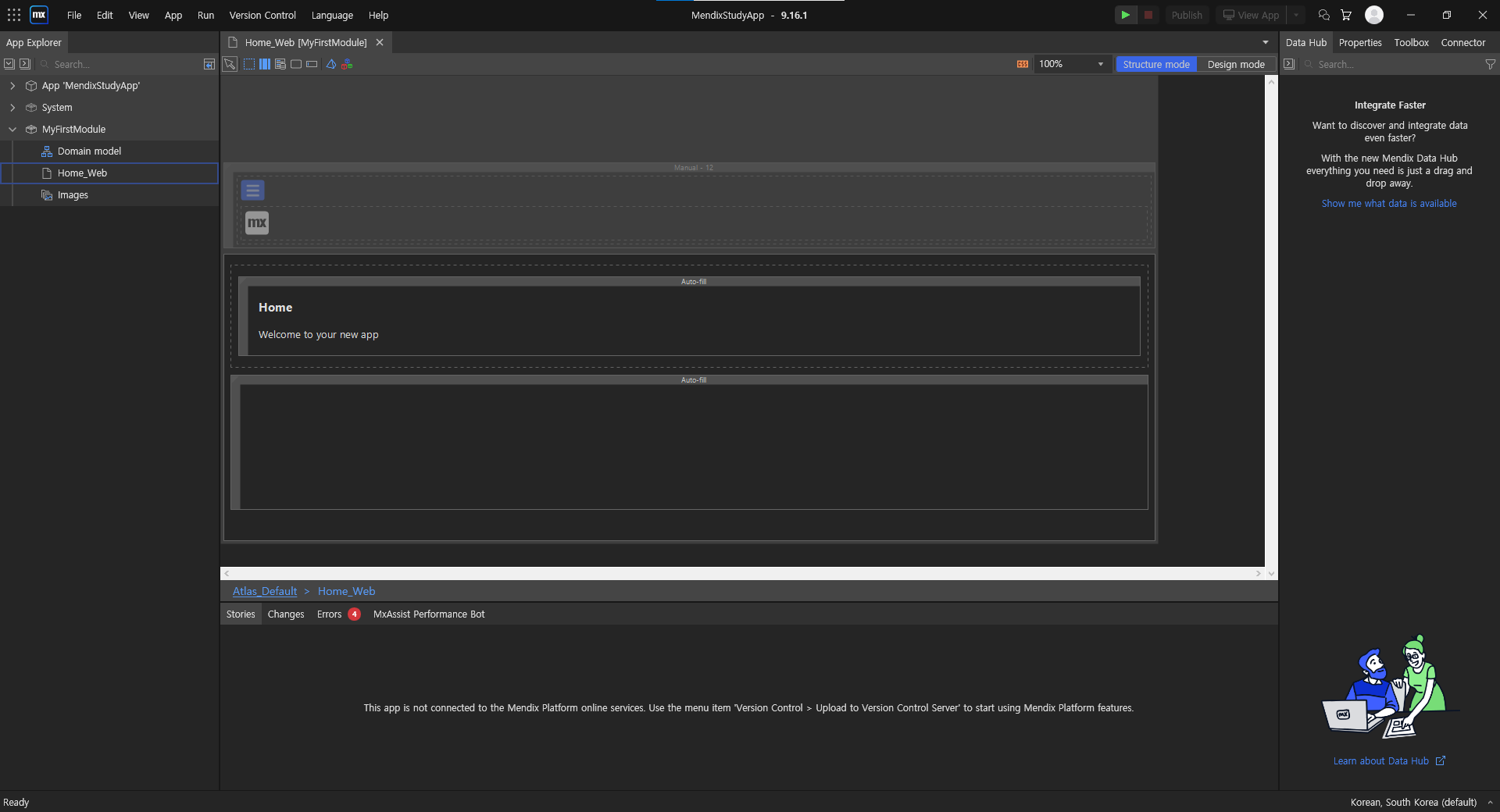 일단 필자는 Mendix 9.16.1 버전으로 작성