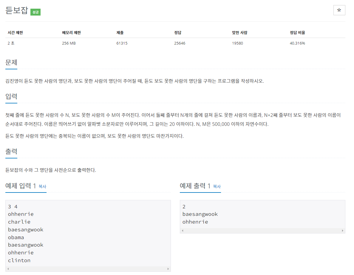 // 백준 1764번 듣보잡