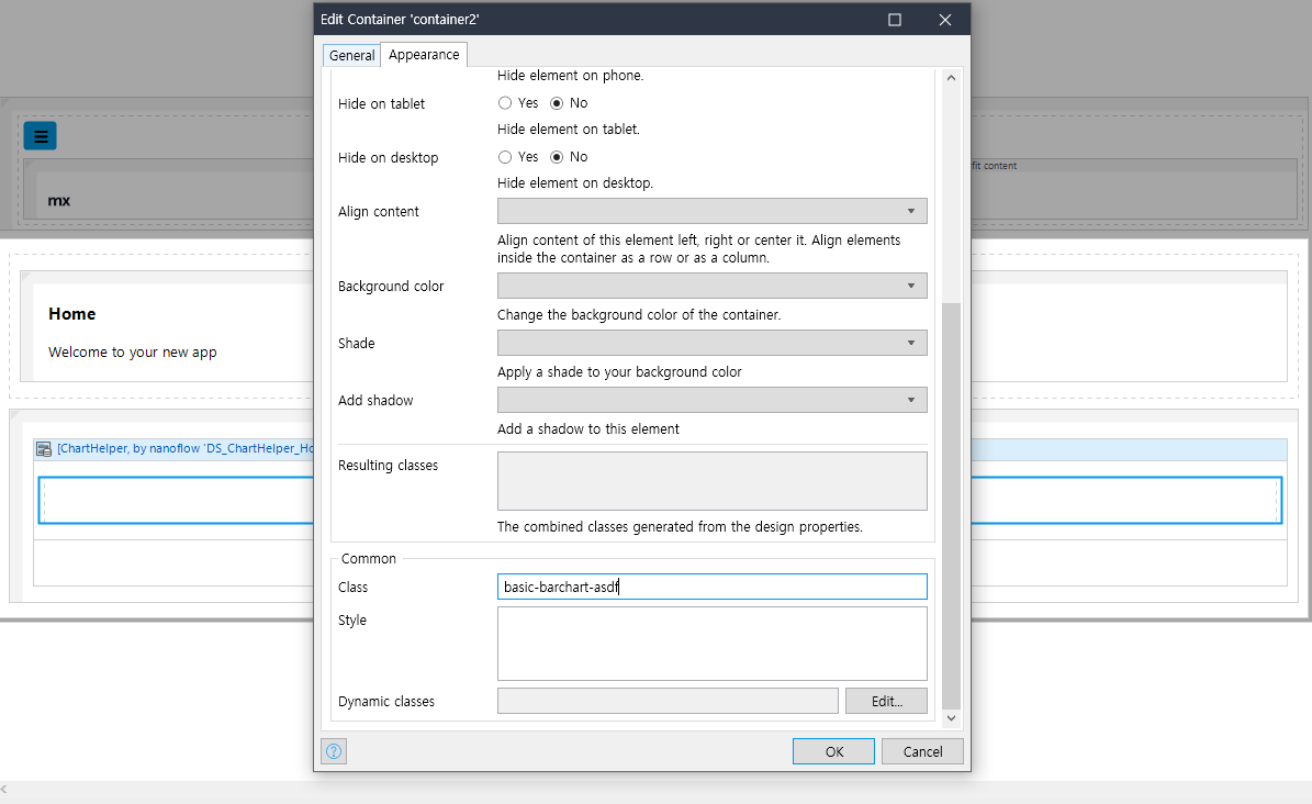 Data View 내에 Container를 하나 추가 후, Appearance 부분의 Class 부분에 클래스를 정의해준다