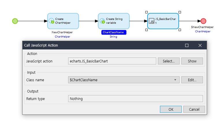 단, 차트를 사용하기 위한 JavaScript Action 은 해당 echarts 모듈 내에 만들어주어야 한다