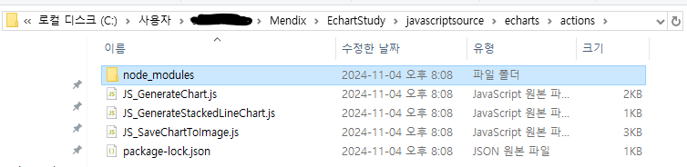 우리는 이 폴더에 우리가 만들고 만들고 싶은 차트들의 JavaScript Action을 생성할 것이다