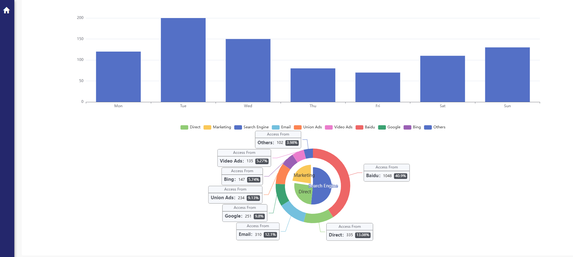 data: [120, 200, 150, 80, 70, 110, 130],