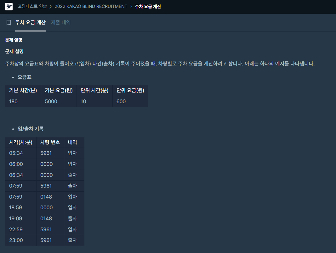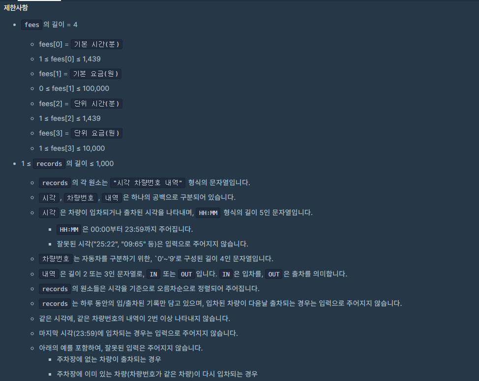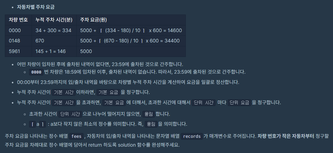 // 문제에서 제시받은 입출차 기록을 Map에 put