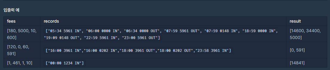 // 입출차 시간을 int형으로 변환 (01:30 -> 90)